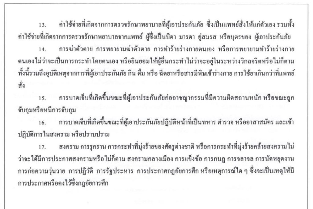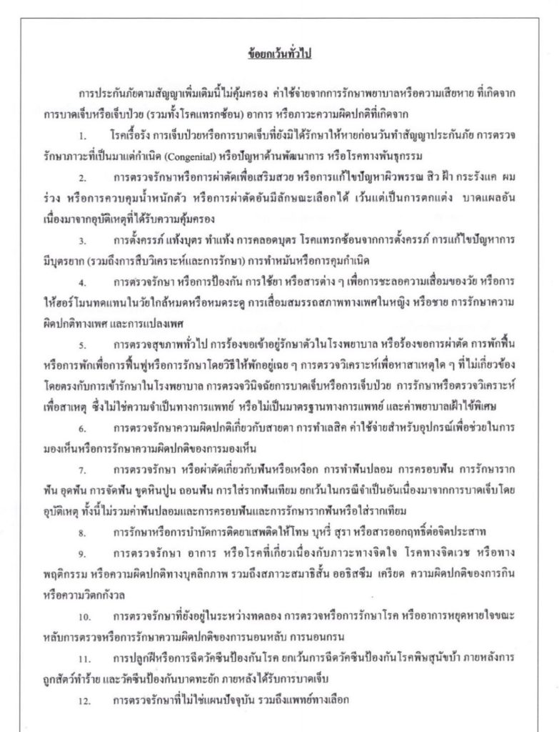 2. ประกันสุขภาพจะมีข้อยกเว้นอยู่หลายข้อตามตัวอย่างดังกล่าว